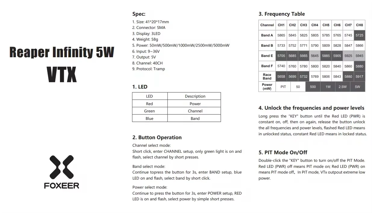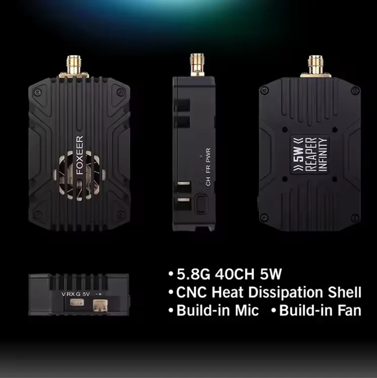 Foxeer Reaper 5.8G 40CH 5W VTX Build-in Mic Fan Heat Dissipation 20Xmm 9-36V VTX for RC Airplane FPV Long Range