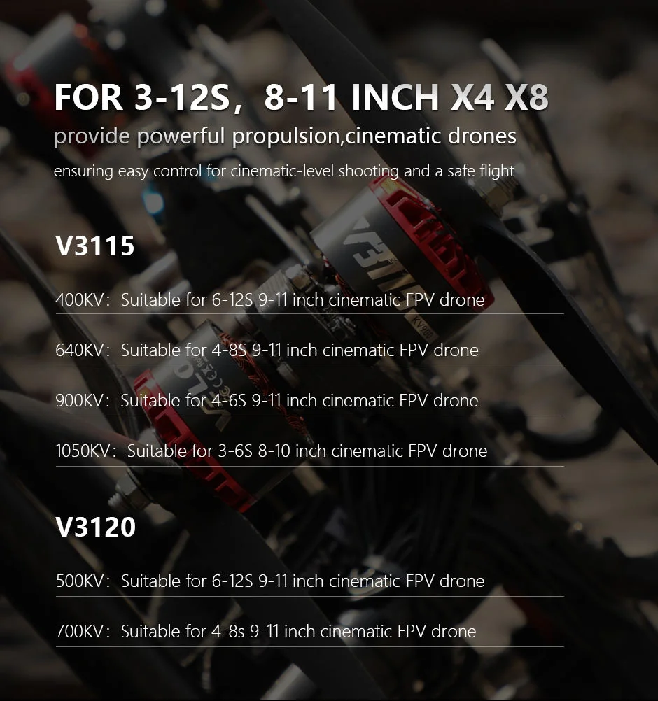 T-motor V3115 1050kv 900kv 400kv 640kv 3-12s Brushless Bldc Fpv Drone Motor for 8-11 Inch X4 X8 Cinematic Drone
